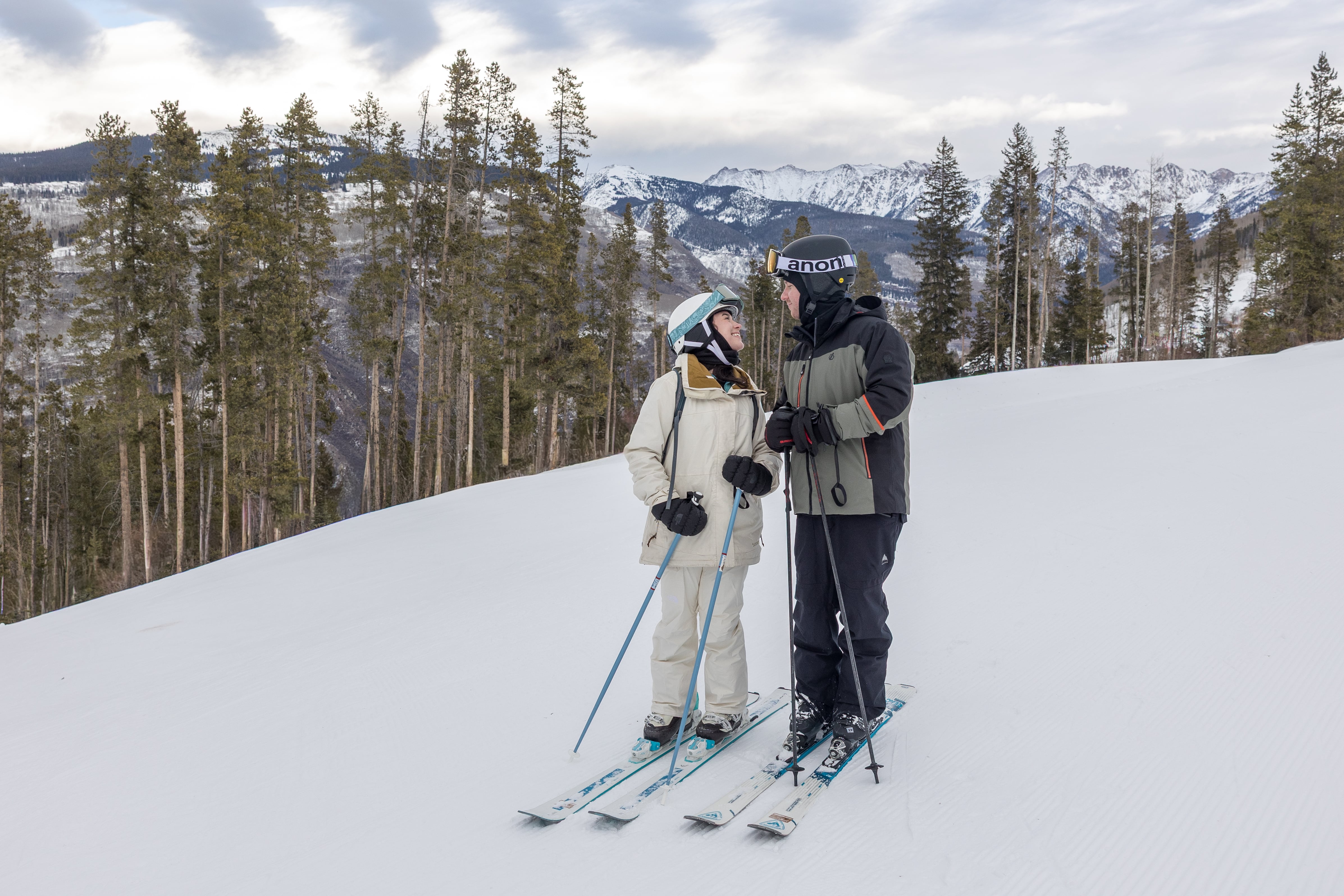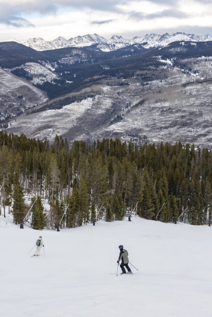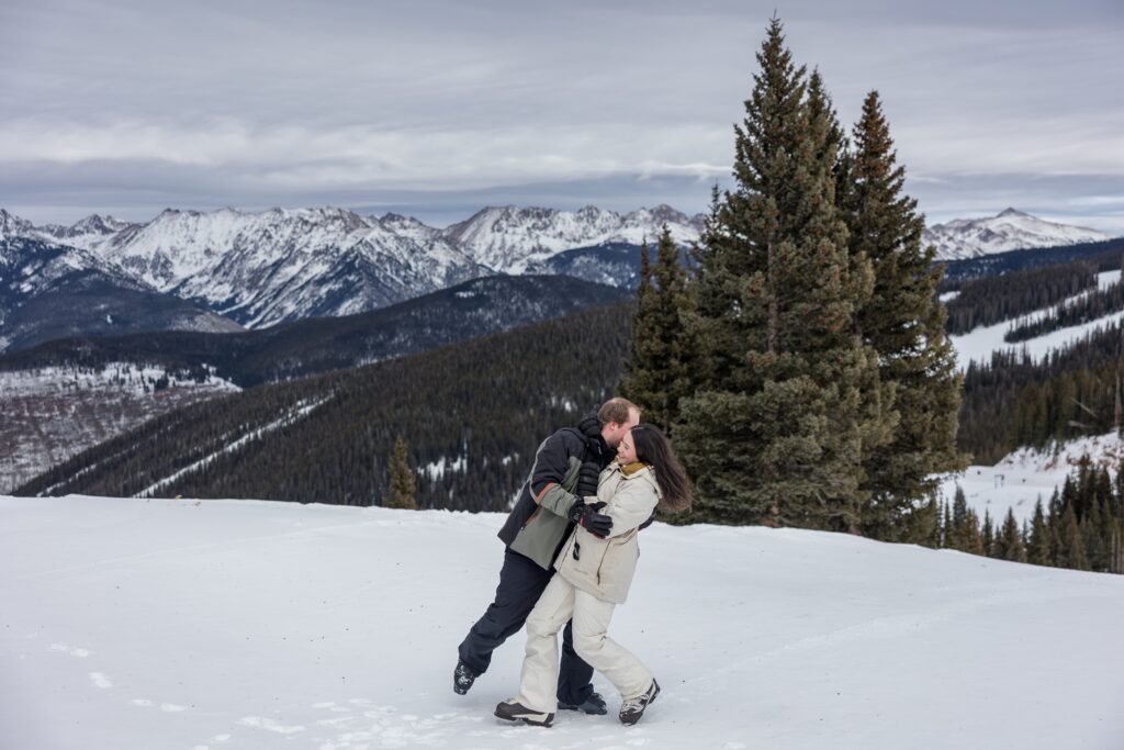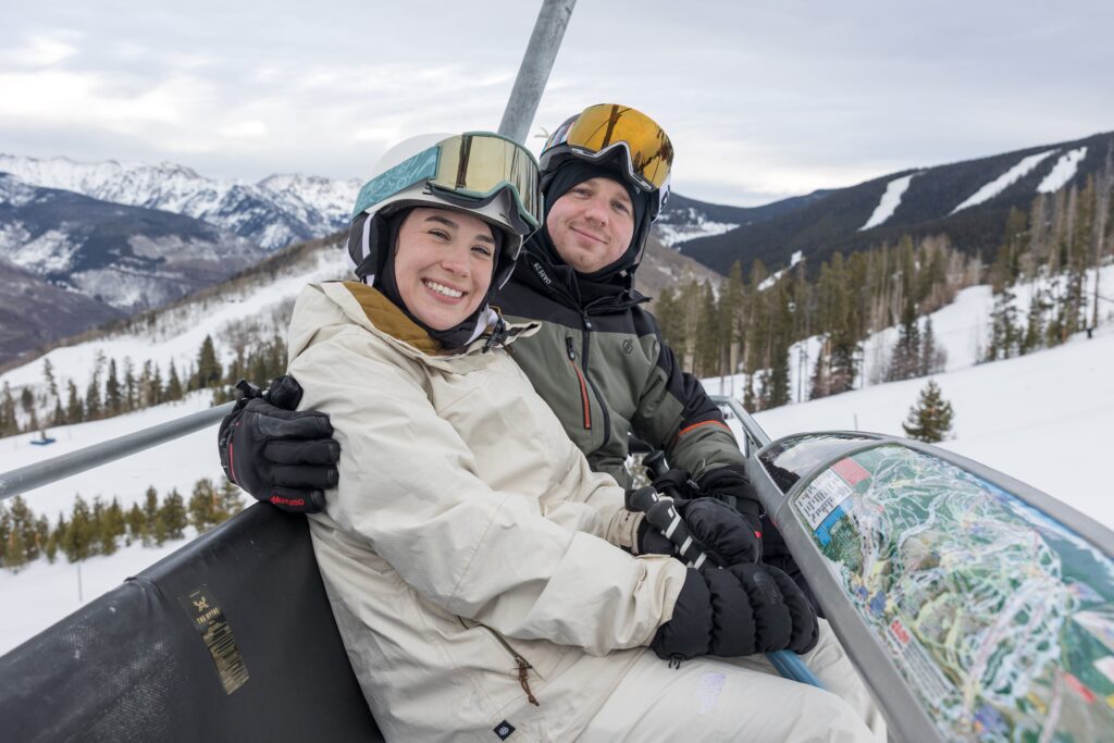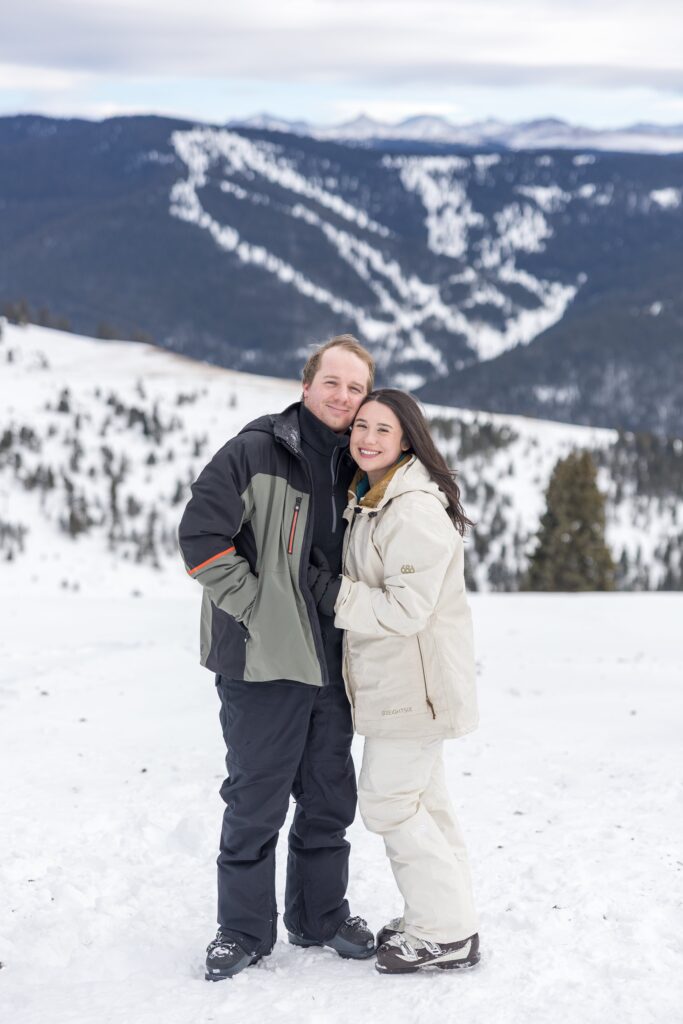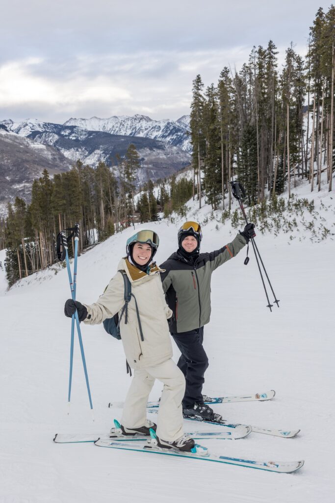 Elle and Jackson’s December ski engagement session at Vail was a true reflection of who they are and how they love to spend time together. Originally from Atlanta, the two moved to Colorado together after college and wanted their engagement photos to reflect the place—and lifestyle—they now love. With a destination wedding planned for later in 2026, they chose to celebrate this season of life with a fun, laid-back session on the mountain doing what they enjoy most: skiing.