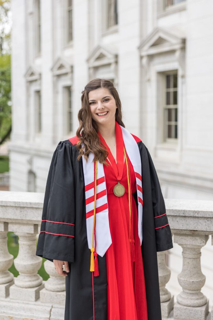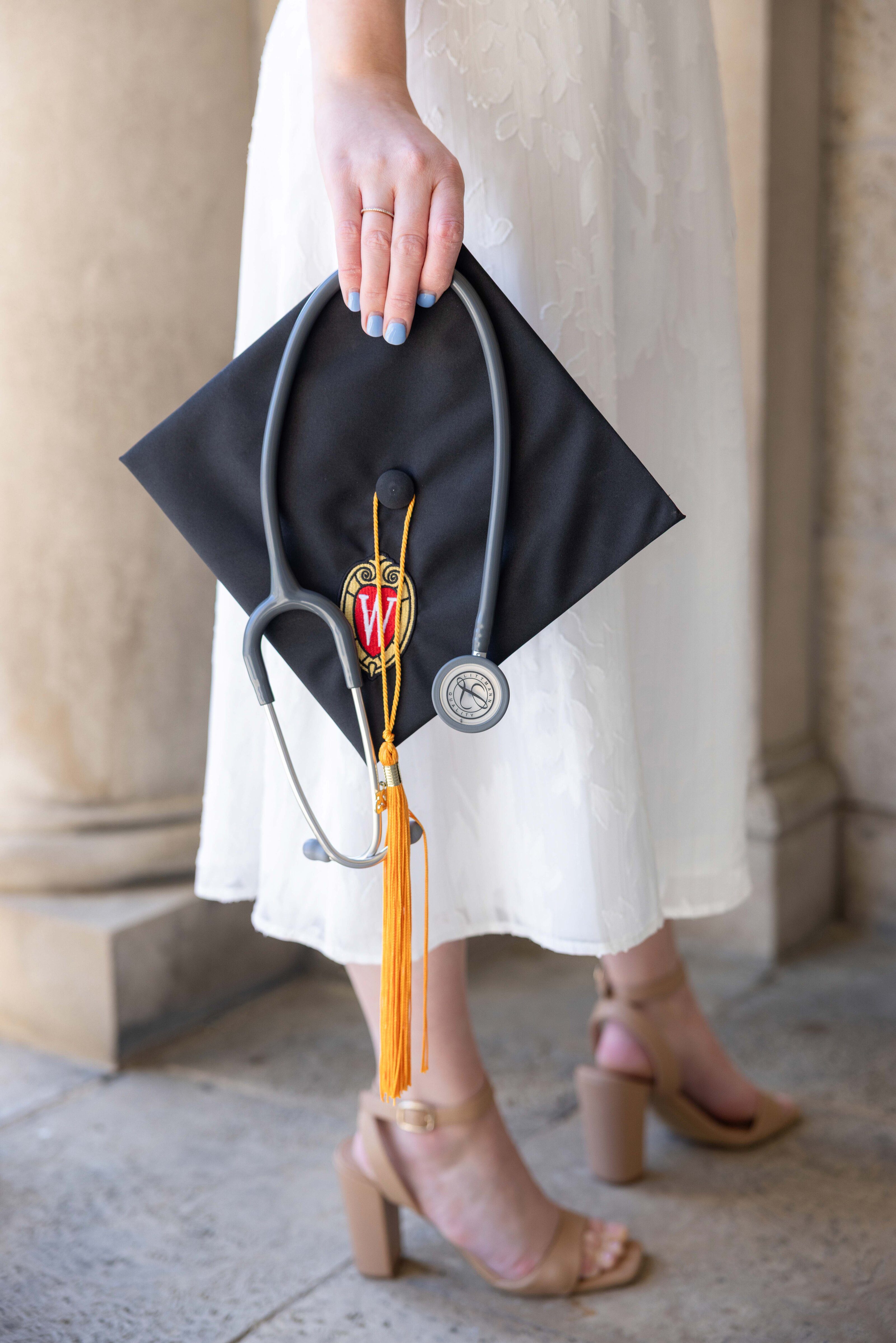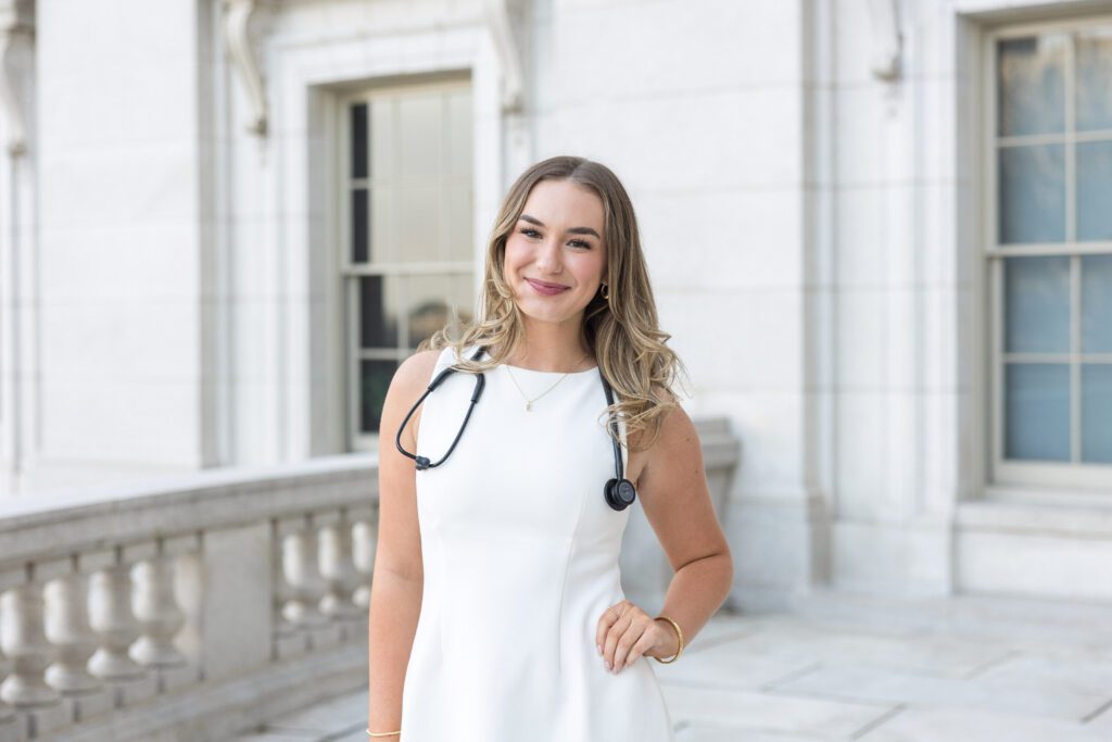 Pro Tip: Steam or wrinkle-release your gown and any stoles before your session. Wrinkles—especially in stoles—are very noticeable in photos. If wrinkle-free details are important to you, taking care of this ahead of time makes a big difference. A handheld garment steamer such as this one is a super helpful tool to have on hand.